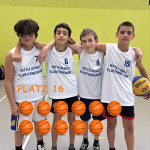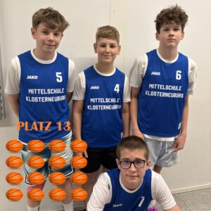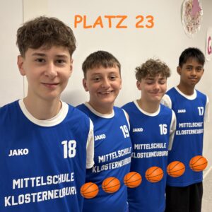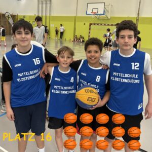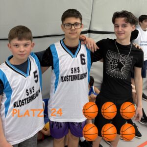 Bei den Niederösterreichischen Basketball 3×3 Schulmeisterschaften in St.Pölten war die MS Klosterneuburg mit 12 Teams Teil eines riesigen Teilnehmerfeldes von 105 Mannschaften aus ganz Niederösterreich. Das Reglement ist sportlich anspruchsvoll: Jedes Team muss aus einem Klassenverband bestehen und darf maximal eine Vereinsspielerin oder einen Vereinsspieler pro Team einsetzen. Gespielt wird auf einem Korb 3 gegen 3 bis 11 Punkte oder bis zum Ende der Spielzeit von 8 Minuten.